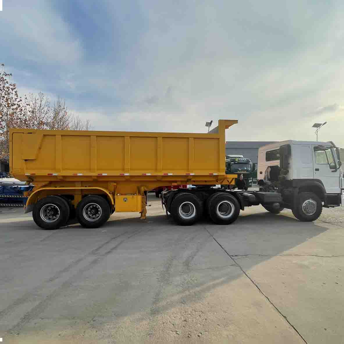 விவரங்களைப் பொறுத்தவரை, டெரூன் இரண்டு-அச்சு பின்புற டம்ப் அரை டிரெய்லர் உயர்தர டயர்கள் மற்றும் சஸ்பென்ஷன் முறையை ஏற்றுக்கொள்கிறது, இது டிரெய்லரின் ஓட்டுநர் நிலைத்தன்மையையும் வசதியையும் மேம்படுத்துகிறது. டிரெய்லரின் லைட்டிங் சிஸ்டம் அனைத்து ஒளி நிலைகளிலும் தெளிவான பார்வையை வழங்குவதை உறுதி செய்வதற்காக கவனமாக வடிவமைக்கப்பட்டுள்ளது. கூடுதலாக, டிரெய்லரில் புத்திசாலித்தனமான கண்காணிப்பு அமைப்பு பொருத்தப்பட்டுள்ளது, இது வாகனத்தின் இயக்க நிலை மற்றும் சரக்கு நிலைமையை நிகழ்நேரத்தில் கண்காணிக்க முடியும், ஓட்டுநர்களுக்கு விரிவான பாதுகாப்பு பாதுகாப்பை வழங்குகிறது.