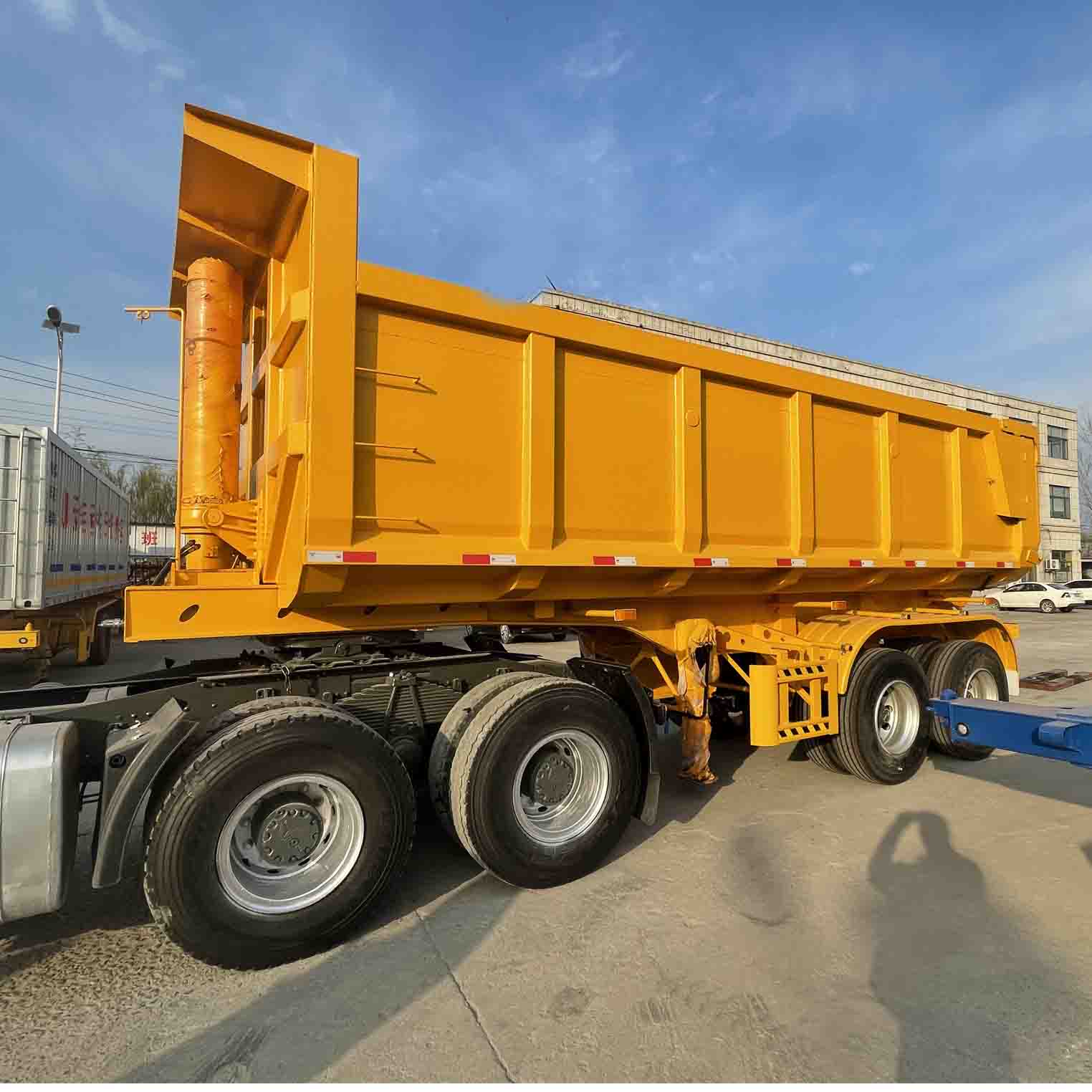 டெரூன் இரண்டு-அச்சு பின்புற டிப்பர் அரை டிரெய்லர் அதிக வலிமை கொண்ட எஃகு மூலம் தயாரிக்கப்படுகிறது, துணிவுமிக்க மற்றும் நீடித்த உடல் அமைப்புடன், அதிக சுமைகள் மற்றும் கடுமையான சாலை நிலைமைகளைத் தாங்கும் திறன் கொண்டது. அதன் தனித்துவமான பின்புற-டிப்பிங் வடிவமைப்பு இறக்குதல் செயல்முறையை மிக விரைவாகவும் வசதியாகவும் ஆக்குகிறது, இது போக்குவரத்து செயல்திறனை பெரிதும் மேம்படுத்துகிறது. இதற்கிடையில், எளிதான செயல்பாடு, பாதுகாப்பு மற்றும் நம்பகத்தன்மையை உறுதி செய்வதற்காக வாகனம் மேம்பட்ட ஹைட்ராலிக் அமைப்பு மற்றும் கட்டுப்பாட்டு அமைப்பு பொருத்தப்பட்டுள்ளது.