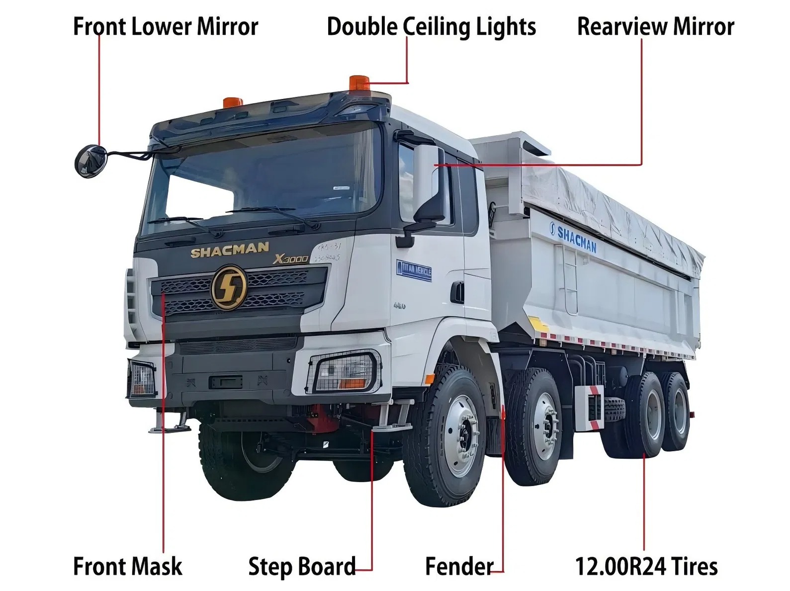 ஷாக்மேன் எக்ஸ் 3000 6x4 & 8x4 டம்ப் டிரக் வீச்சாய் WP10 அல்லது WP12 தொடர் என்ஜின்களுடன் பொருத்தப்பட்டுள்ளது, குதிரைத்திறன் 340 ஹெச்பி முதல் 460 ஹெச்பி வரை உள்ளது, இது யூரோ வி அல்லது யூரோ VI உமிழ்வு தரங்களை பூர்த்தி செய்ய முடியும். என்ஜின்கள் குறைந்த வேகம் மற்றும் அதிக முறுக்கு வெளியீடு, அதிக எரிபொருள் செயல்திறன் மற்றும் குறைந்த பராமரிப்பு செலவு ஆகியவற்றின் பண்புகளைக் கொண்டுள்ளன. வேகமான 12-ஸ்பீடு அல்லது 13-ஸ்பீடு டிரான்ஸ்மிஷனுடன் பொருந்தக்கூடிய, இது அதிக பரிமாற்ற திறன் மற்றும் மென்மையான கியர் மாற்றத்தைக் கொண்டுள்ளது. வண்டி நான்கு-புள்ளி ஏர்பேக் சஸ்பென்ஷன் முறையை ஏற்றுக்கொள்கிறது, இது அதிர்வு மற்றும் சத்தத்தை திறம்பட குறைக்கிறது மற்றும் ஓட்டுநர் வசதியை மேம்படுத்துகிறது. பல்வேறு அளவிலான சரக்கு பெட்டிகள் 5.6 மீ முதல் 9.1 மீ வரை, அதிகபட்சம் 30 கன மீட்டர் திறன் கொண்டவை, வெவ்வேறு போக்குவரத்து தேவைகளைப் பூர்த்தி செய்ய கிடைக்கின்றன. இந்த வாகனம் சாலை, என்னுடையது, கட்டுமான தளம் மற்றும் பிற காட்சிகளுக்கு ஏற்றது, இது கட்டுமானம், சுரங்க மற்றும் தளவாடத் தொழில்களுக்கு சிறந்த தேர்வாகும்.