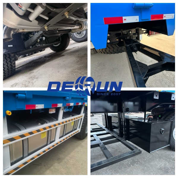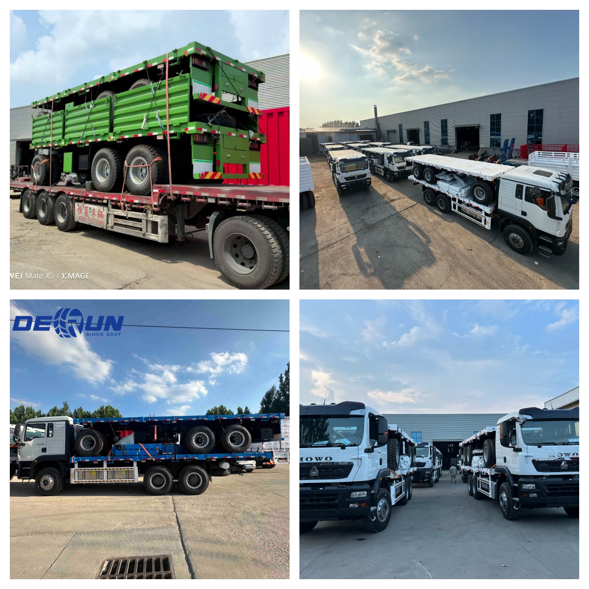உயர் வலிமை கொண்ட அலாய் எஃகு செய்யப்பட்ட டிராபார் டிரெய்லெரிஸுடன் வேலி சரக்கு டிரக்கின் சேஸ், ஒற்றை முத்திரை செயல்பாட்டில் நீளமான விட்டங்கள் உருவாகின்றன, மேலும் சுமை தாங்கும் திறன் மற்றும் முறுக்கு விறைப்புத்தன்மையை சமப்படுத்த முக்கியமான அழுத்தப் பகுதிகளில் உள் தட்டுகளுடன் வலுப்படுத்தப்படுகின்றன; டிரக் மற்றும் டிரெய்லர் இரண்டும் மல்டி-இலை நீரூற்றுகள் மற்றும் குழாய் அதிர்ச்சி உறிஞ்சிகளின் கலவையைப் பயன்படுத்துகின்றன, முன்பக்கத்தில் ஒரு குறுக்குவெட்டு நிலைப்படுத்தி பட்டியுடன் மற்றும் பின்புறத்தில் ஏர்பேக்குகளைத் தூக்கி, இறக்கும்போது எரிபொருள் நுகர்வு குறைகிறது மற்றும் முழுமையாக ஏற்றப்படும்போது நிலைத்தன்மையை மேம்படுத்துகிறது. டிரக்கின் மின் அமைப்பில் தூசி-ஆதாரம் மற்றும் மணல்-ஆதாரம் வயரிங் சேனல்கள், வலுவூட்டப்பட்ட காற்று வடிப்பான்கள் மற்றும் பாலைவன வடிப்பான்கள் ஆகியவை ஆப்பிரிக்க பாலைவனத்தின் தூசி நிறைந்த நிலைமைகளுக்கு ஏற்ப பொருத்தப்பட்டுள்ளன. அனைத்து விளக்குகளும் இரவில் அதிக தெரிவுநிலைக்கு எல்.ஈ.டி ஆதாரங்களைப் பயன்படுத்துகின்றன. வண்டியில் நான்கு-புள்ளி இடைநீக்க அமைப்பு, காற்று-மெத்தை கொண்ட இருக்கைகள், மின்சார ஜன்னல்கள், ஒரு மல்டிஃபங்க்ஸ்னல் ஸ்டீயரிங் மற்றும் நீண்ட தூர வசதிக்காக ஒரு பரந்த படுக்கை ஆகியவை உள்ளன. தானியங்கள், உரங்கள் மற்றும் கட்டுமானப் பொருட்கள் போன்ற மொத்த பொருட்களை எளிதாக ஏற்றுவதற்கும் இறக்குவதற்கும் டிரெய்லர் ஒரு இலகுரக சரக்கு பெட்டியின் கட்டமைப்பை நீக்கக்கூடிய பக்க பேனல்களுடன் ஏற்றுக்கொள்கிறது.