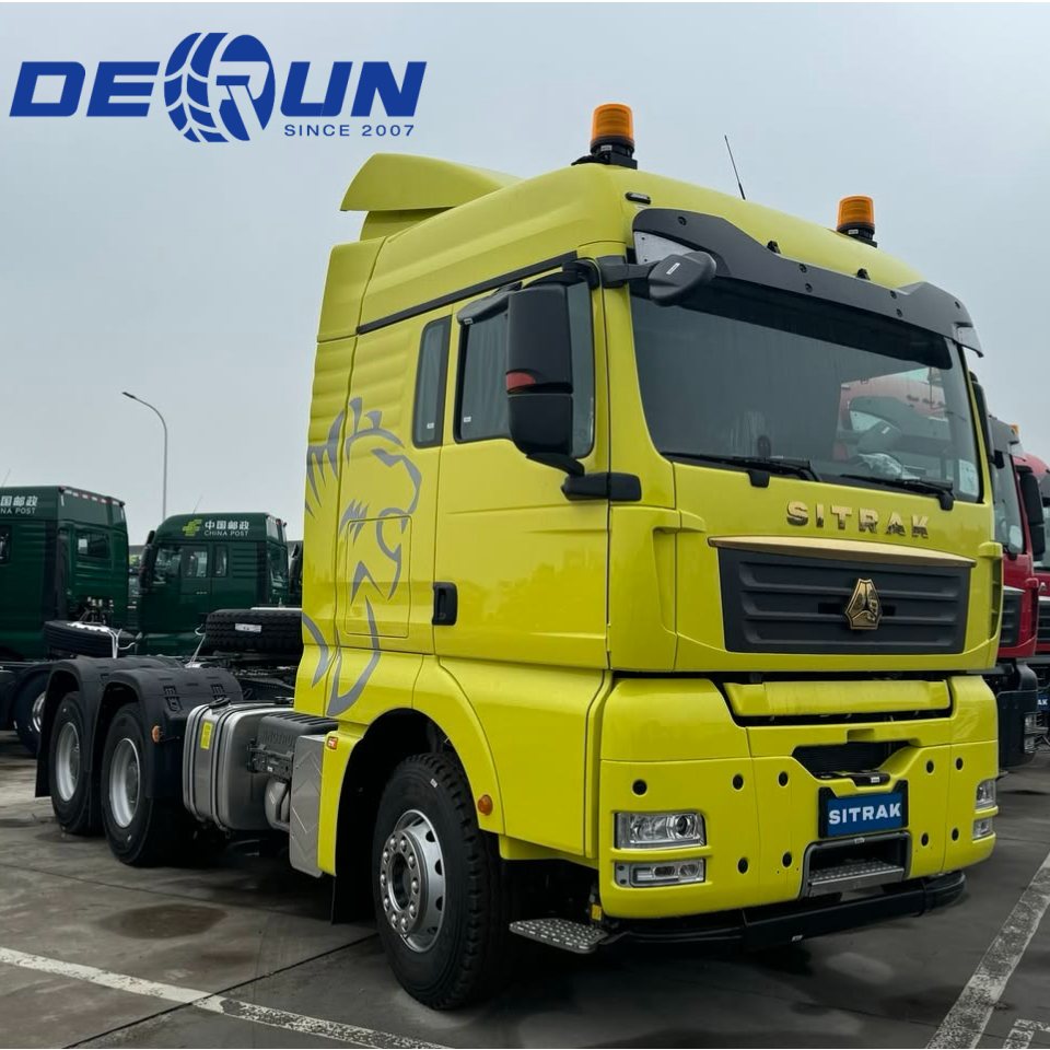 சினோட்ரூக் சிட்ராக் 6 எக்ஸ் 4 10 வீல் ஹெட் டிராக்டர் டிரக் பிரைம் மூவர் என்பது சீனா நேஷனல் ஹெவி டியூட்டி டிரக் குழுமத்தால் (சி.என்.எச்.டி.சி) தொடங்கப்பட்ட ஒரு உயர்நிலை ஹெவி டியூட்டி டிரக் ஆகும், இது பல மேம்பட்ட தொழில்நுட்பங்களை ஒருங்கிணைக்கிறது மற்றும் நீண்ட தூர மற்றும் அதிவேக தளவாட போக்குவரத்துக்காக வடிவமைக்கப்பட்டுள்ளது. அதன் தோற்றம் நெறிப்படுத்தும் வடிவமைப்பை ஏற்றுக்கொள்கிறது, இது காற்றின் எதிர்ப்பை திறம்பட குறைக்கிறது மற்றும் எரிபொருள் சிக்கனத்தை மேம்படுத்துகிறது. வண்டி விசாலமான மற்றும் வசதியானது, ஒரு ஆடம்பரமான உள்துறை மற்றும் பல பயனர் நட்பு வடிவமைப்புகளுடன் ஓட்டுநர் மற்றும் பயணிகளுக்கு வசதியான ஓட்டுநர் சூழலை வழங்க.